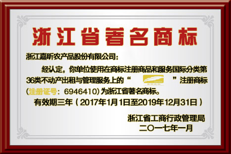 • 浙江省著名商標