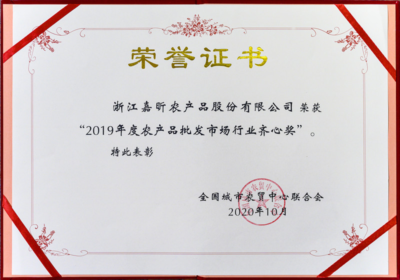 • 2019年度農(nóng)批市場行業(yè)齊心獎