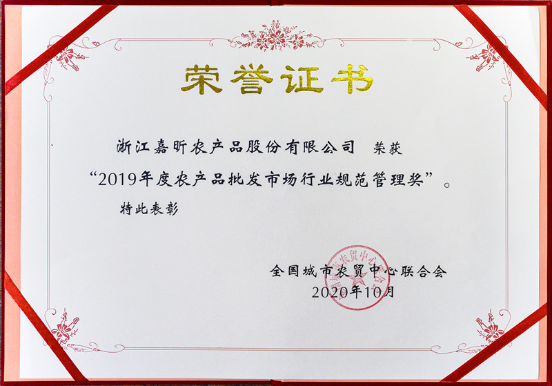 • 2019年度農(nóng)批市場行業(yè)規(guī)范管理獎