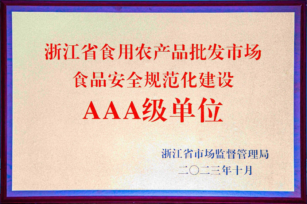 • 浙江省食品安全體系建設“AAA級
