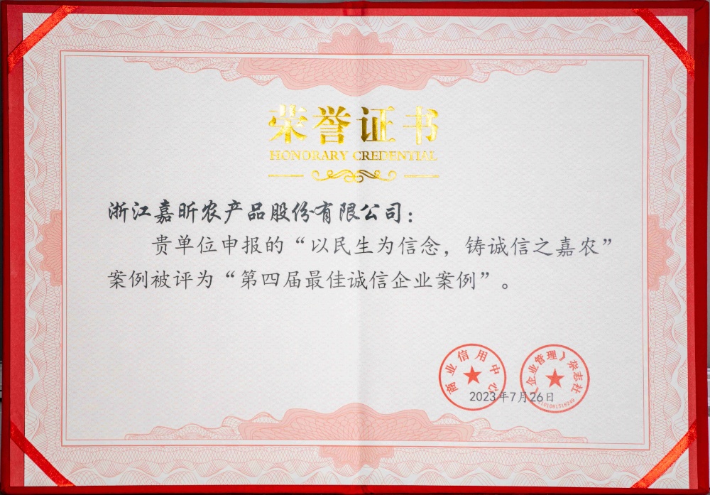 • 浙江嘉昕農(nóng)產(chǎn)品股份有限公司(其前身為嘉興市蔬菜食品有限公司),是國家級服務業(yè)標準化試點(商貿(mào)流通專項)第一批典型經(jīng)驗案例推廣企業(yè)并成功通過項目驗收,是全國商業(yè)質(zhì)量品牌示范單位、全國誠信興商雙優(yōu)示范單位、企業(yè)信用等級AAA級企業(yè),是省農(nóng)產(chǎn)品流通龍頭企業(yè)、省骨干農(nóng)業(yè)龍頭企業(yè)、省重點流通企業(yè),省先進基層黨組織企業(yè)、省專業(yè)市場黨建示范點企業(yè)、省防控新冠疫情市場保供貢獻突出企業(yè)、省商貿(mào)流通標準化良好行為示范企業(yè),市先進黨組織企業(yè)、市抗擊新冠肺炎疫情先進集體企業(yè)、市十佳農(nóng)業(yè)龍頭企業(yè)、市服務業(yè)領(lǐng)軍型企業(yè)、市先進集體、市文明單位、市和諧勞動關(guān)系先進企業(yè),區(qū)高質(zhì)量發(fā)展十強服務業(yè)企業(yè)、區(qū)十強納稅服務業(yè)企業(yè),是市政府“菜籃子”工程主要實施單位之一。