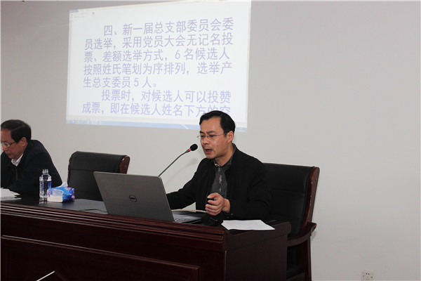 在會議上,屠書記首先對第五屆總支委任職期間公司黨建工作和總支部換屆選舉有關(guān)前期各項準(zhǔn)備工作作了要點回顧講話。按照公司黨建2018年度工作計劃,從3月23日總支委召開會議研究部署換屆改選有關(guān)具體工作起,相關(guān)工作按計劃規(guī)范有序推進(jìn)。在對總支委員候選人推薦工作上,分別經(jīng)總支委提名推薦、總支部黨員大會和各支部黨員大會討論醞釀推薦、召開職工群眾座談會聽取意見建議、換屆選舉總支委候選人公示進(jìn)一步聽取意見等程序,最終確定了總支委候選人的報批名單。會上,屠書記就上級黨工委(區(qū)直屬機(jī)關(guān)〔企業(yè)〕黨工委)同意我總支部換屆選舉候選人等有關(guān)批復(fù)文件進(jìn)行了宣讀。